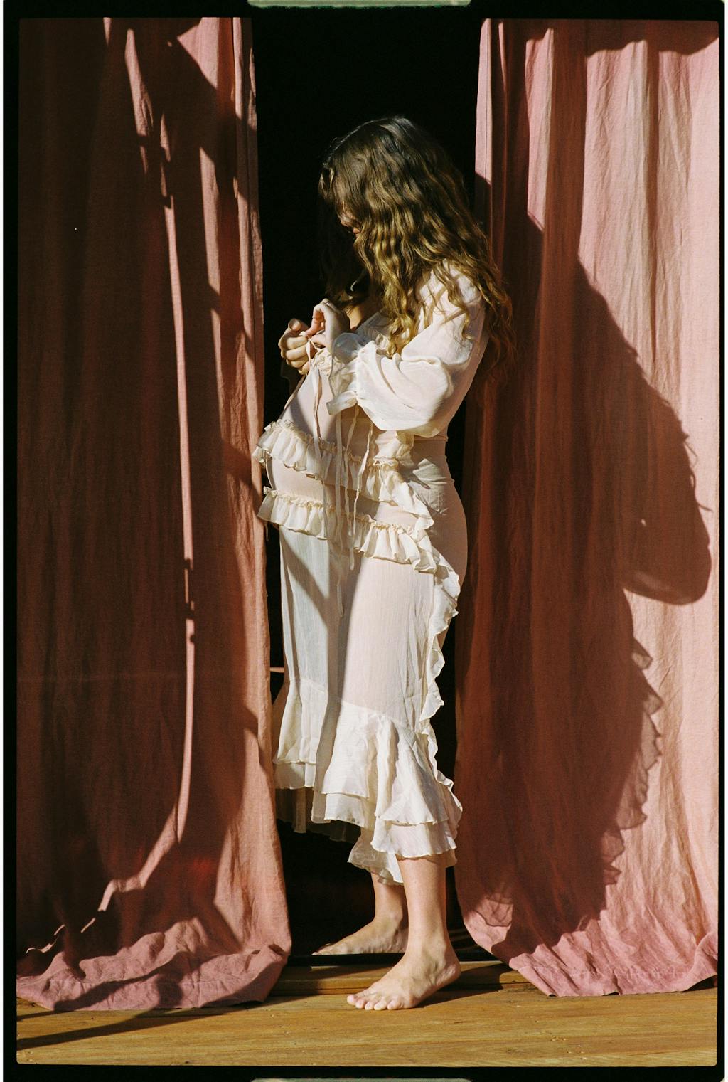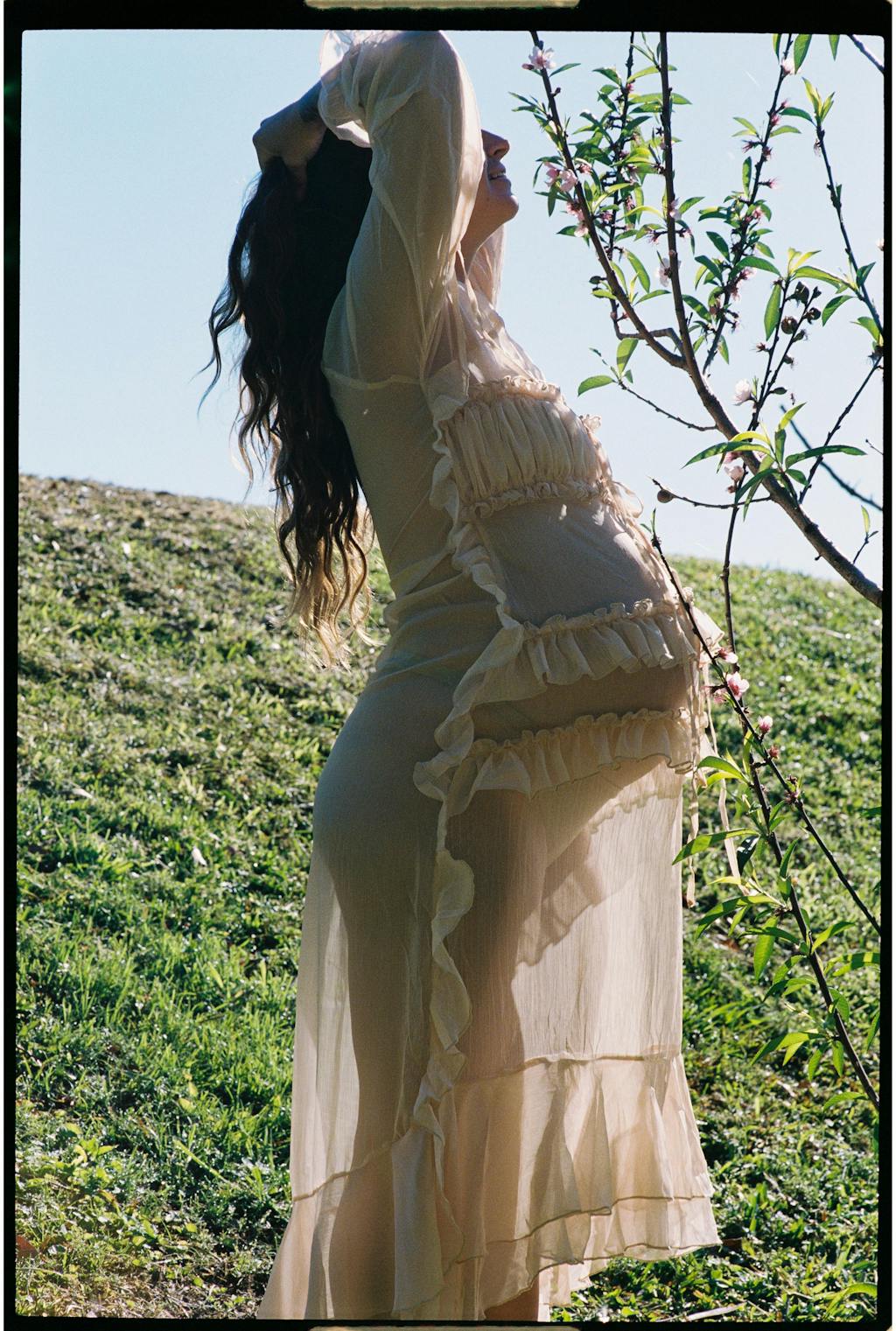 Meet Amara, the dress that feels like spring evenings wrapped up in chiffon. She’s structured to perfection with french seams and an effortlessly slinky drape. With delicate frill details that dance as you move. A flattering adjustable neckline and draw string ties around the wrists make her as versatile as she is timeless. Wine bar dates with the girls, barefoot at the beach, or late-night dinners that turn into something more - she is your dress.