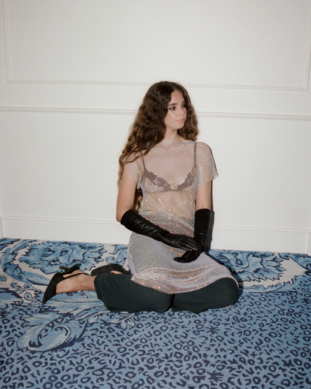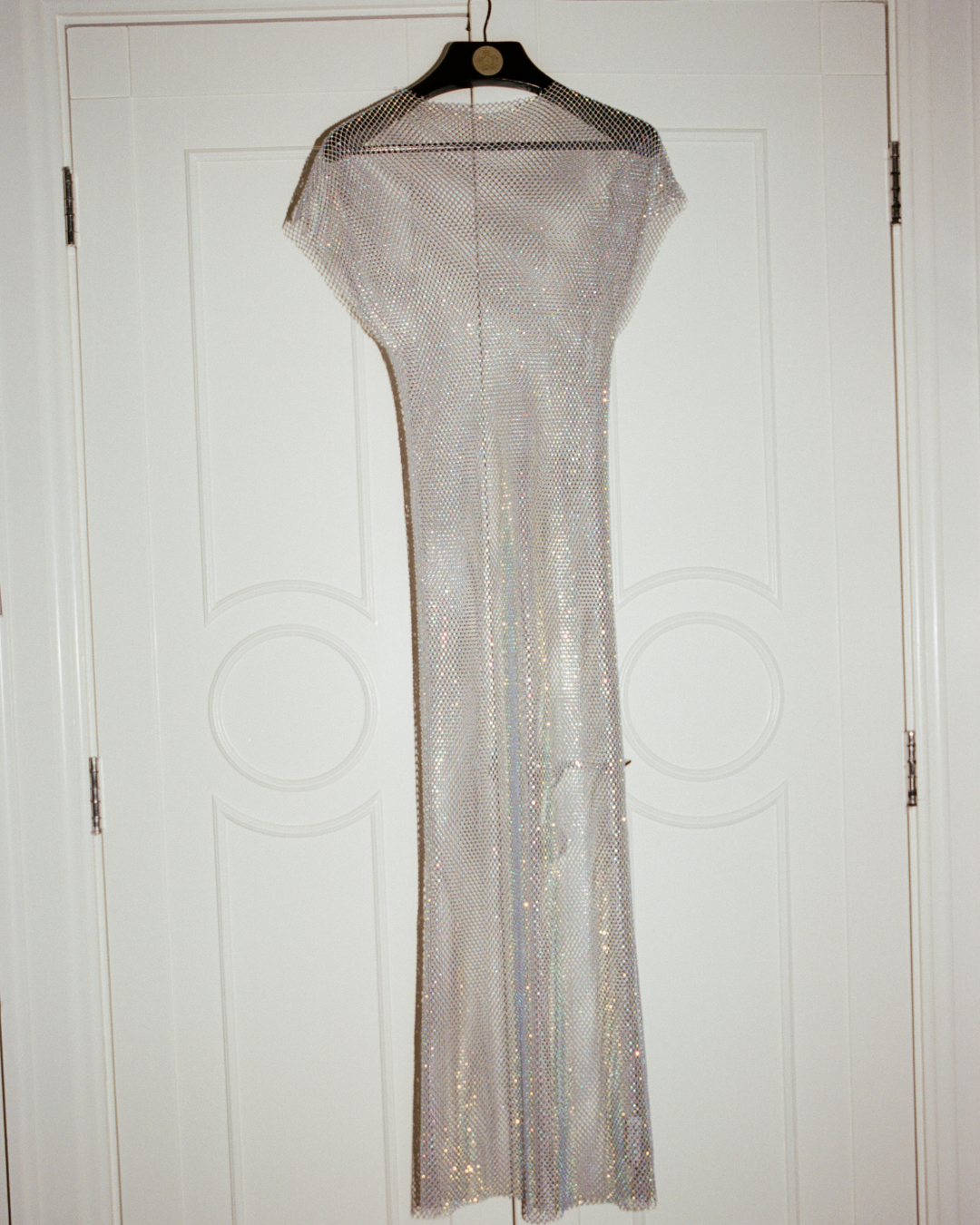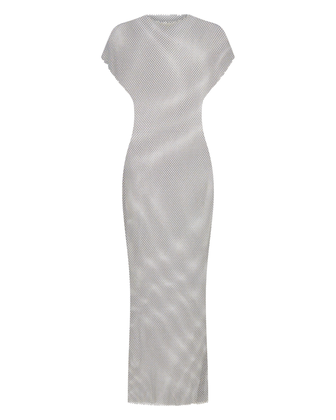Each rhinestone, each glimmering thread creates a mesh that drapes over the body like molten metal. She skims, she shimmers, she moves with you. Minimal but magnetic. Clean but daring. The kind of dress that turns a warm summer night into its own story.