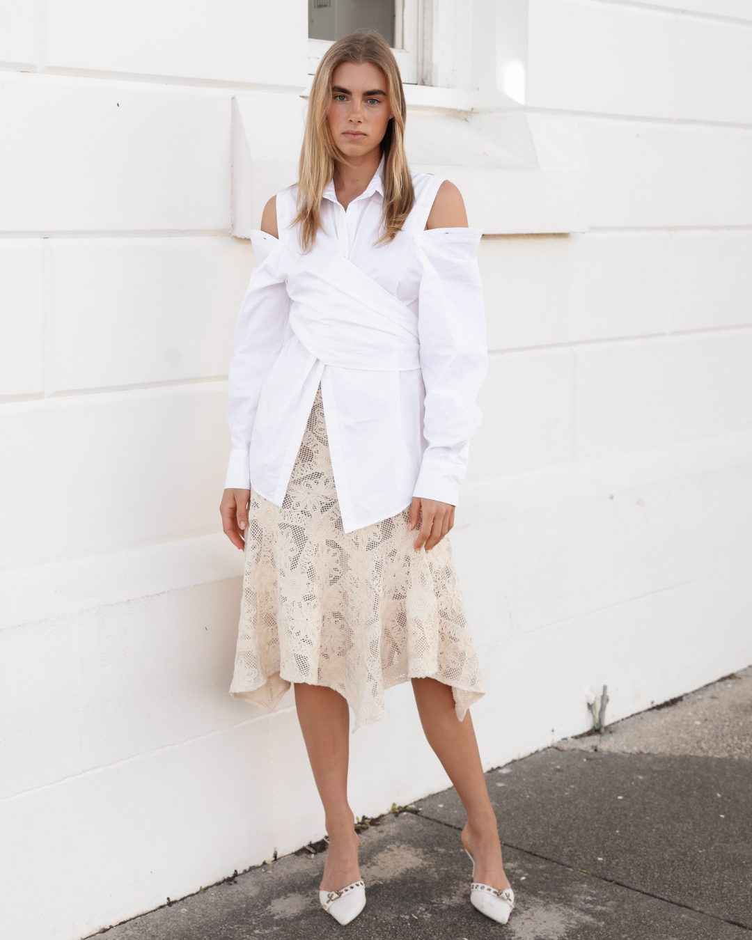 Meet the Deconstructed Wrap Shirt by Modalità Vacanza — an architectural twist on our cult-favourite wrap silhouette, reimagined for the heat of summer. Clean lines, crisp cotton, and a flirtatious shoulder moment designed to feel equal parts polished and undone.