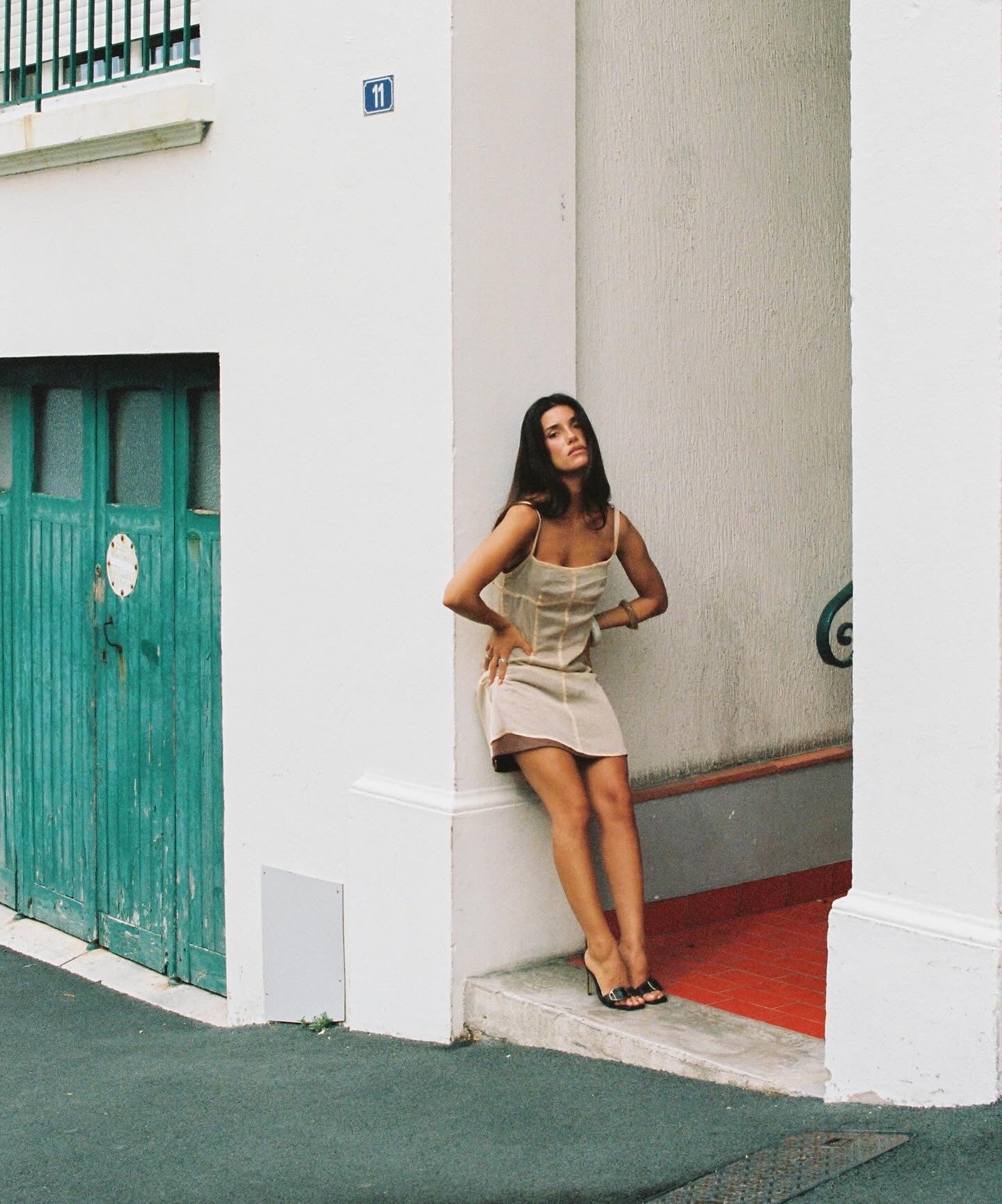 The Amara Mini Dress is our 90s-inspired two-piece moment. An effortless layering set made for warm nights, day or night lighting, and unapologetic "it-girl" energy.