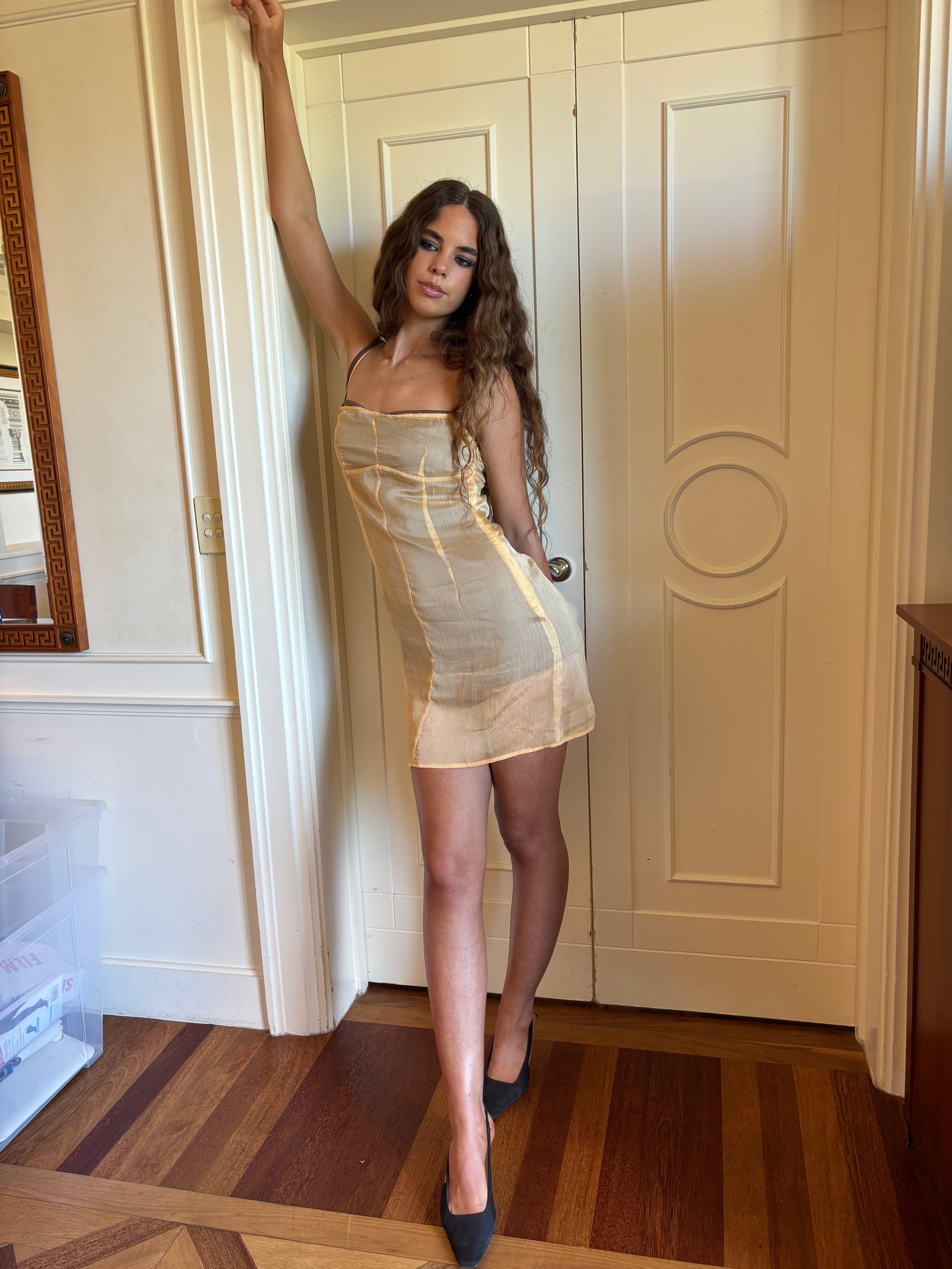 Sheer outer dress inspired by the Amara Maxi, adjustable strap and invisible side zip